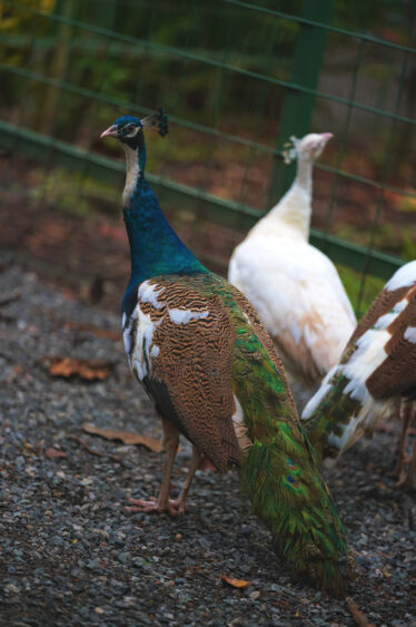 Peacocks are domestic and sociable animals that enjoy walking freely, calling loudly, and exploring their surroundings.